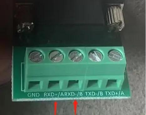 1.2. Prepare a RJ45 cable and a USB to RS485 converter and connect the RJ45 cable to the converter as below